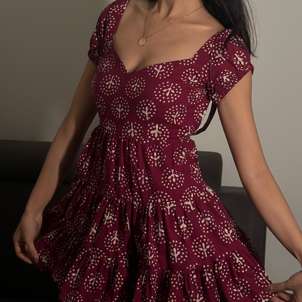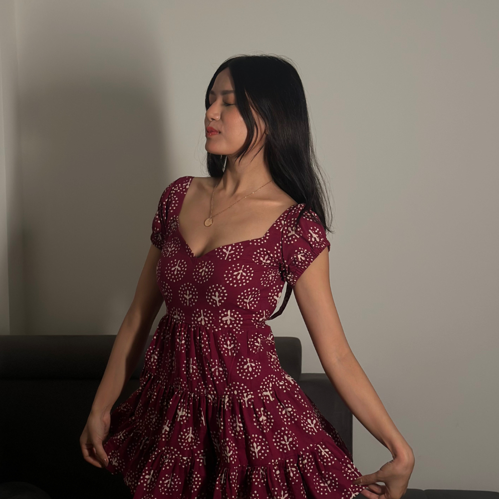& Free Pan India ShippingAdd a touch of playful elegance to your look with this maroon printed tiered dress from Rasiya—where comfort, quality, and style meet to keep you trending all season!